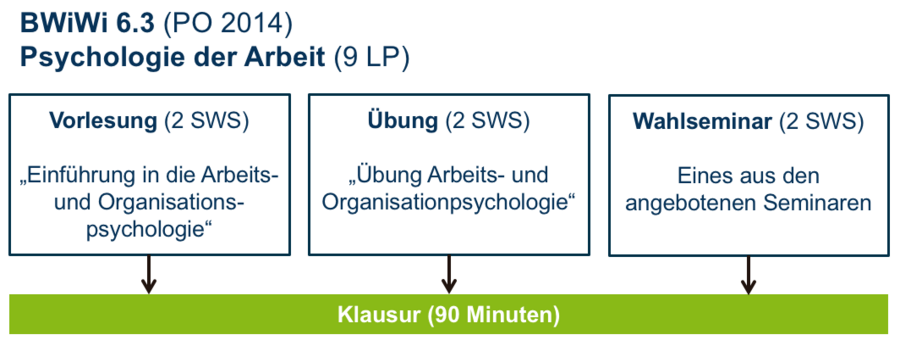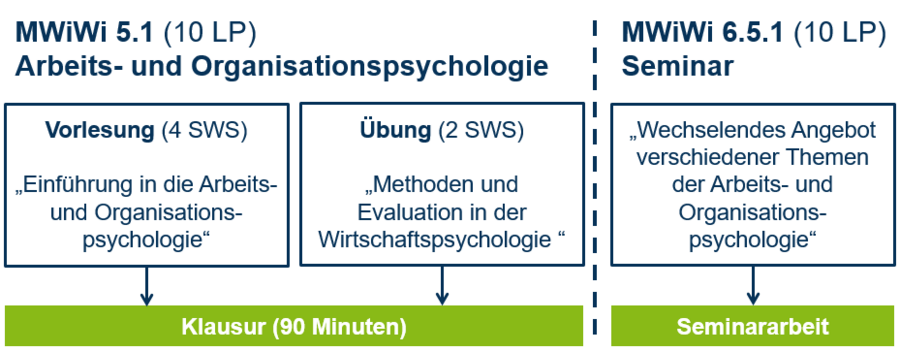 In the Master's programme, we offer courses for the Economics and Psychology degree programmes. Please refer to the diagrams below (click to enlarge) to see which modules these are in detail and in general.